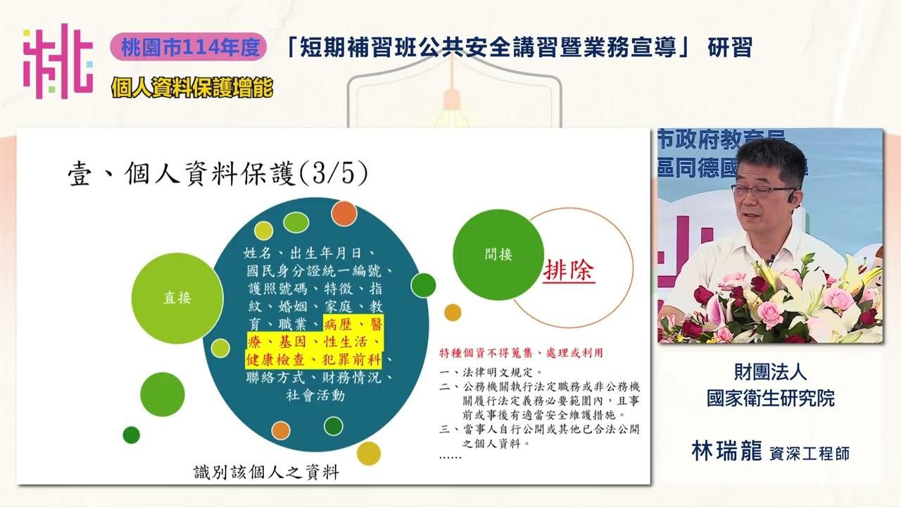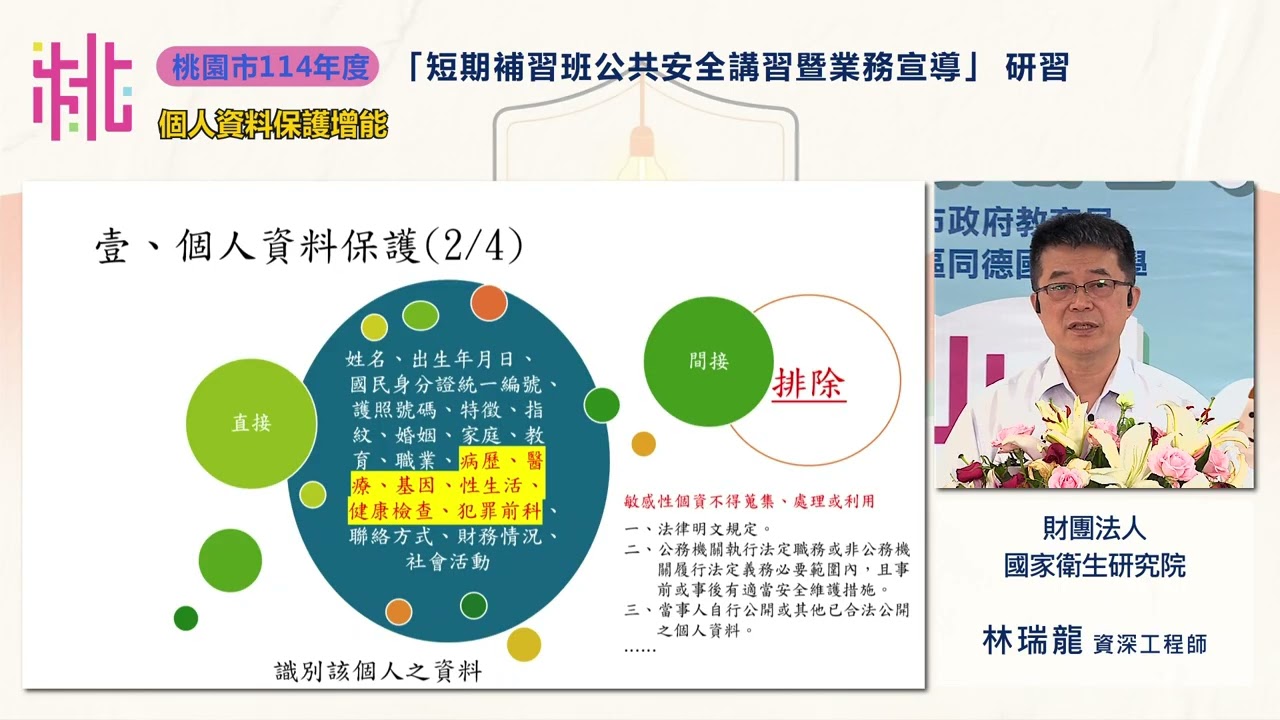 桃園市114年度短期補習班公共安全講習暨業務宣導(第二梯次)-個人資料保護增能