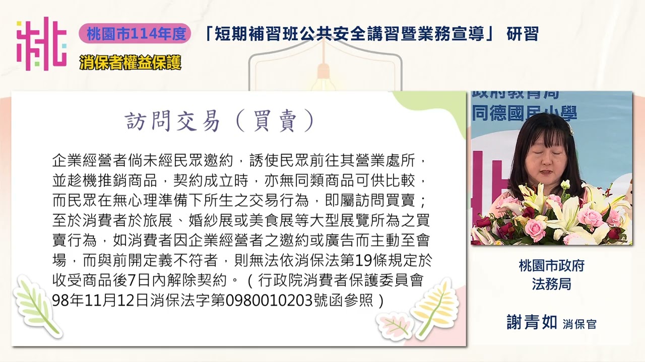 桃園市114年度短期補習班公共安全講習暨業務宣導(第二梯次)-消費者權益保護