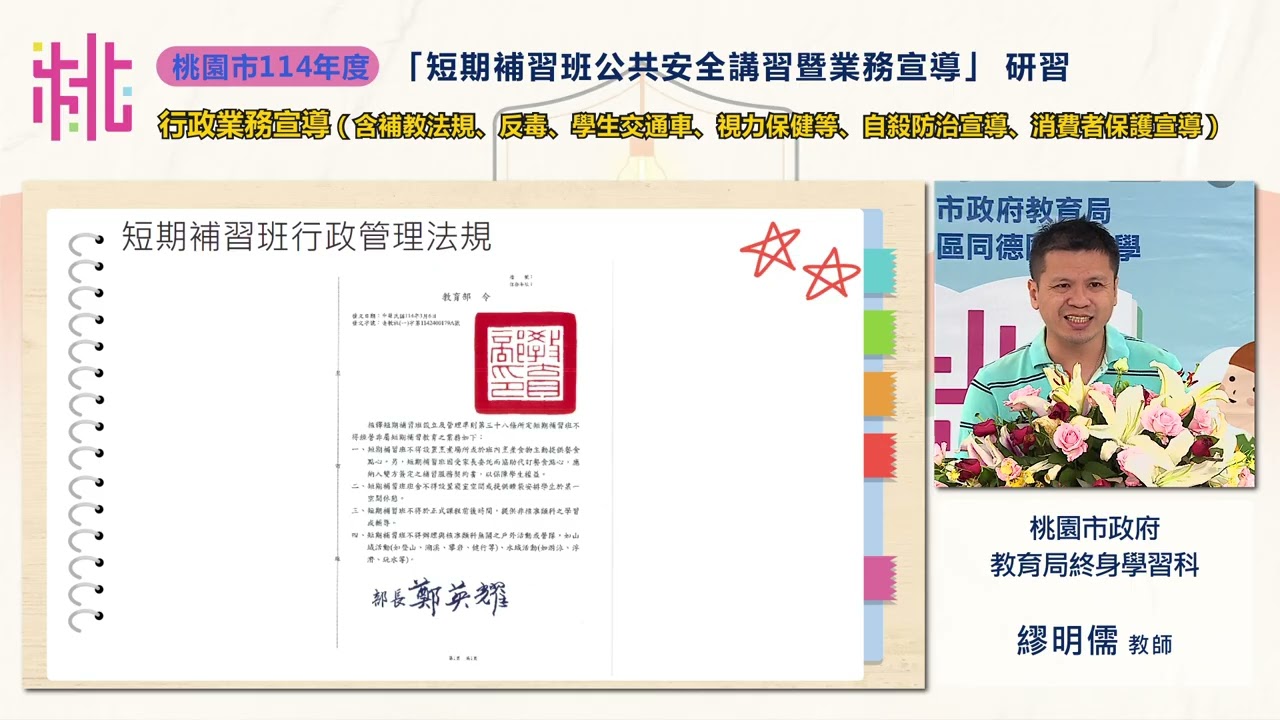 桃園市114年度短期補習班公共安全講習暨業務宣導(第二梯次)-行政業務宣導